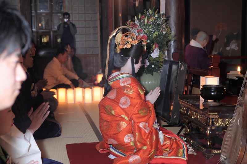 大日寺では、弁財天安置以来、法要が行われてきました。菊姫伝説が広まった後には、弁財天のご利益を授かろうと、多くの女性達がお参りに訪れるようになりました。佐伯藩弁財天様参り「菊姫行列」 は、二〇〇九年より、この法要にあわせて行われるようになりました。