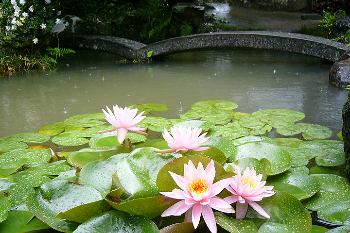 城山の麓にあたる地形を活かし、立体的に構成された庭園です。坂本永年の時代にすでに築造されていました。山際からしみ出る湧水をためた池と古木が、武家屋敷らしい風情を醸し出しています。