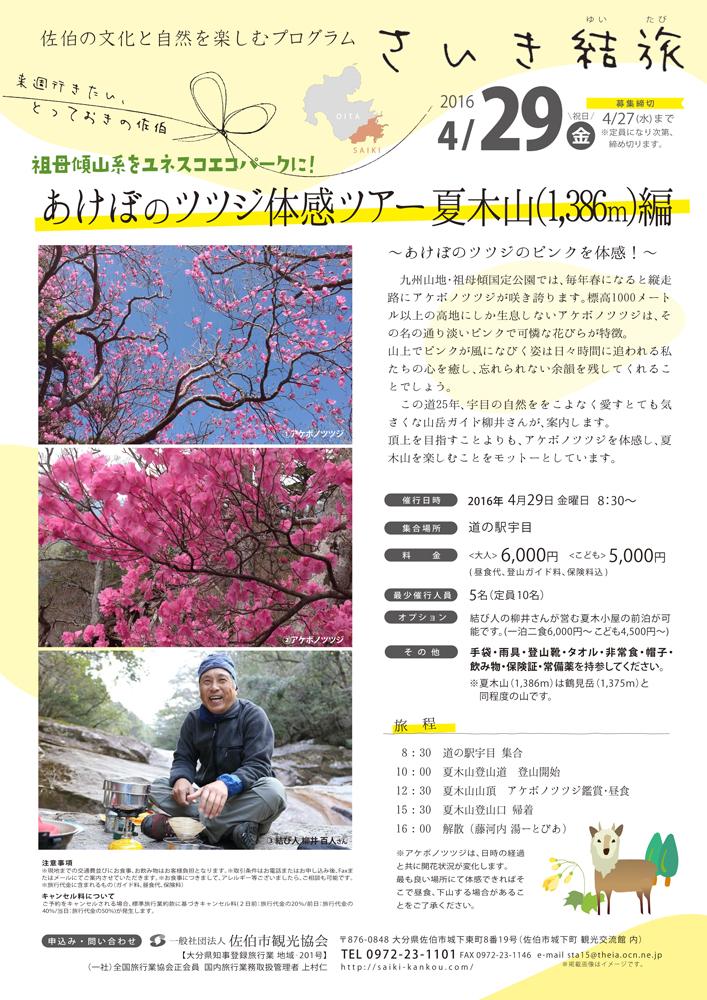 さいき結旅 あけぼのツツジ体感ツアー 開催中止のお知らせ 夏木山(1,386m)編