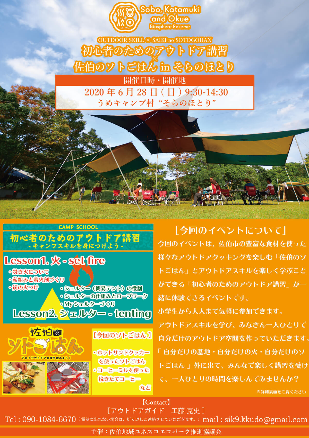 初心者のためのアウトドア講習×佐伯のソトごはん‼︎ “そらのほとり”にて開催!
