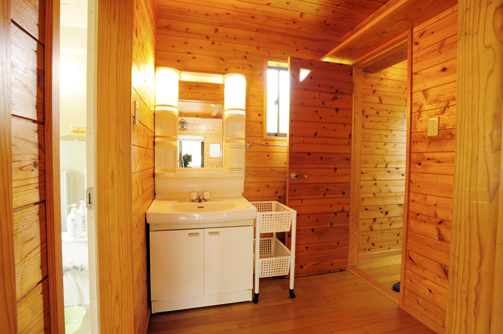木の香りで気分も落ち着く平屋作りの大型宿泊施設です。和室 3部屋に広々とした浴槽。冷蔵庫は 2台完備。