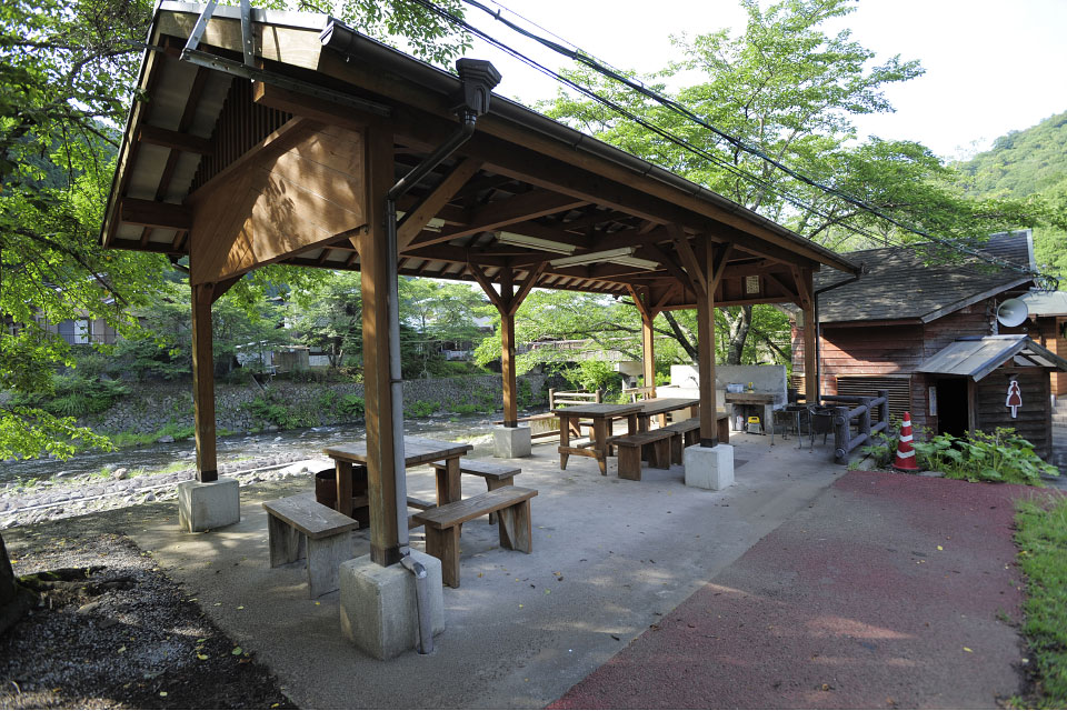 キャンプ場内には「かぶとむしふれあい館」「農業歴史資料館」「昆虫館」などの付帯施設、「ローラーすべり台」「河川プール」などの遊具があります。
